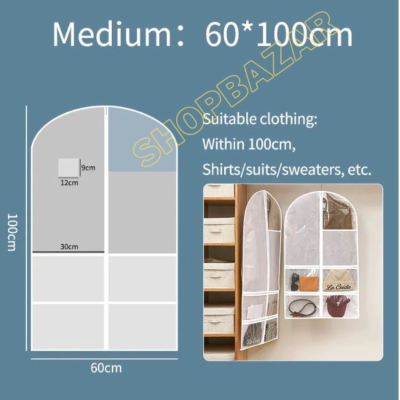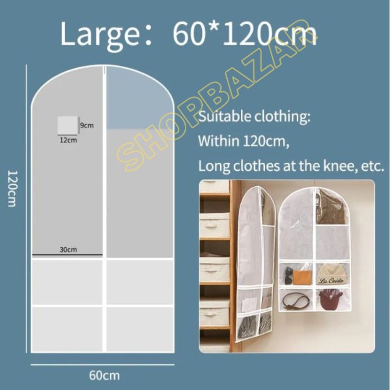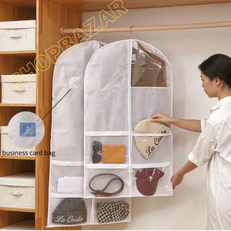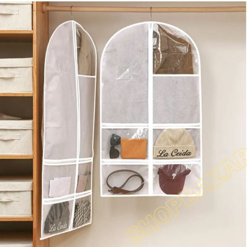 Multifunctional Cloth Dust Cover, Cloth Cover With 4 Transparent Zipper Pocket For Blazer, Panjabi, & Long Dress.